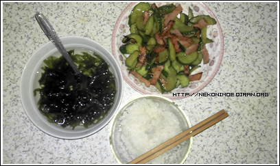 去超市买了黄瓜+培根肉,非常简单的一顿饭,但还是搞得挺杯具的